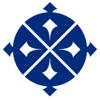 A wooden shuffleboard puck with four black diamond-shaped markings and a central X, viewed from above.